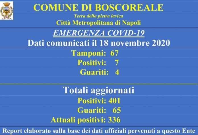 A Boscoreale scende al 10,44% il rapporto fra tamponi effettuati e cittadini risultati positivi al Covid. Si vedono gli effetti delle restrizioni. Sono 7 i positivi comunicati dall’Asl, mentre il numero dei guariti è ancora basso: solo 4.
