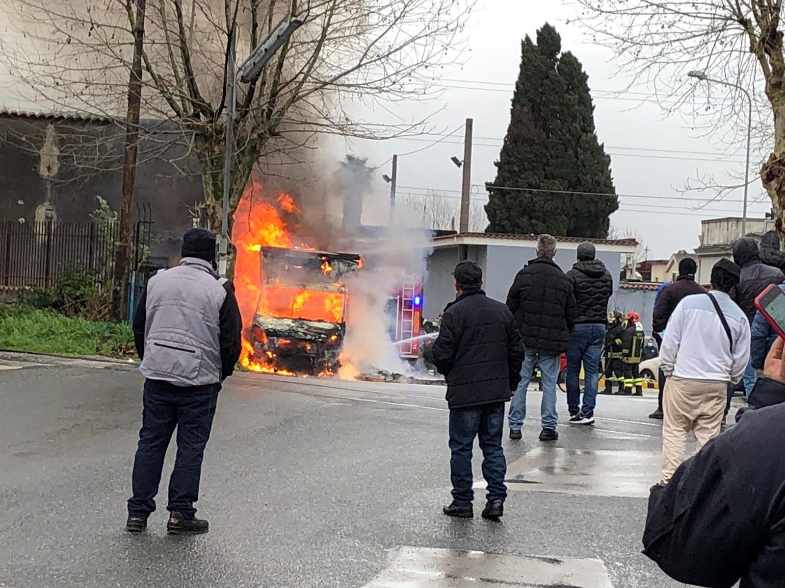 Incendio di un furgone all’esterno del cimitero di Boscoreale. Un veicolo privato è andato alle fiamme per motivi non Incendio di un furgone all’esterno del cimitero di Boscoreale. Un veicolo privato è andato alle fiamme per motivi non ancora noti alle forze dell’ordine. Sul posto sono intervenuti i vigili urbani del comandante Giovanni Sansone (che hanno chiesto ausilio ai colleghi di Terzigno in quanto la strada è divisa tra i due comuni) e i vigili del fuoco. Il mezzo si è incendiato all’esterno del cimitero generando un po’ di panico tra i cittadini e bloccando il traffico nella rotonda che collega via Giordano a via Passanti, uno snodo cruciale per il traffico cittadino.