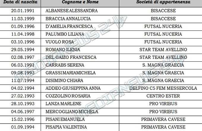 Appuntamento alle 18.30 in entrambe le occasioni per il gruppo di 16 atlete che, entro il prossimo 19 marzo, dovrebbe subire un’ultima scrematura per la compilazione della lista definitiva di calciatrici che rappresenteranno la Campania al Torneo delle Regioni. Di seguito l’elenco delle convocate:
