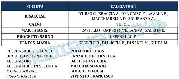 La Rappresentativa Campania femminile di calcio a 5 si ritroverà lunedì sera, appuntamento alle ore 20, al campo Coni di Avellino per un nuovo stage di allenamento in vista del prossimo Torneo delle Regioni Lnd. Di seguito l’elenco delle convocate.