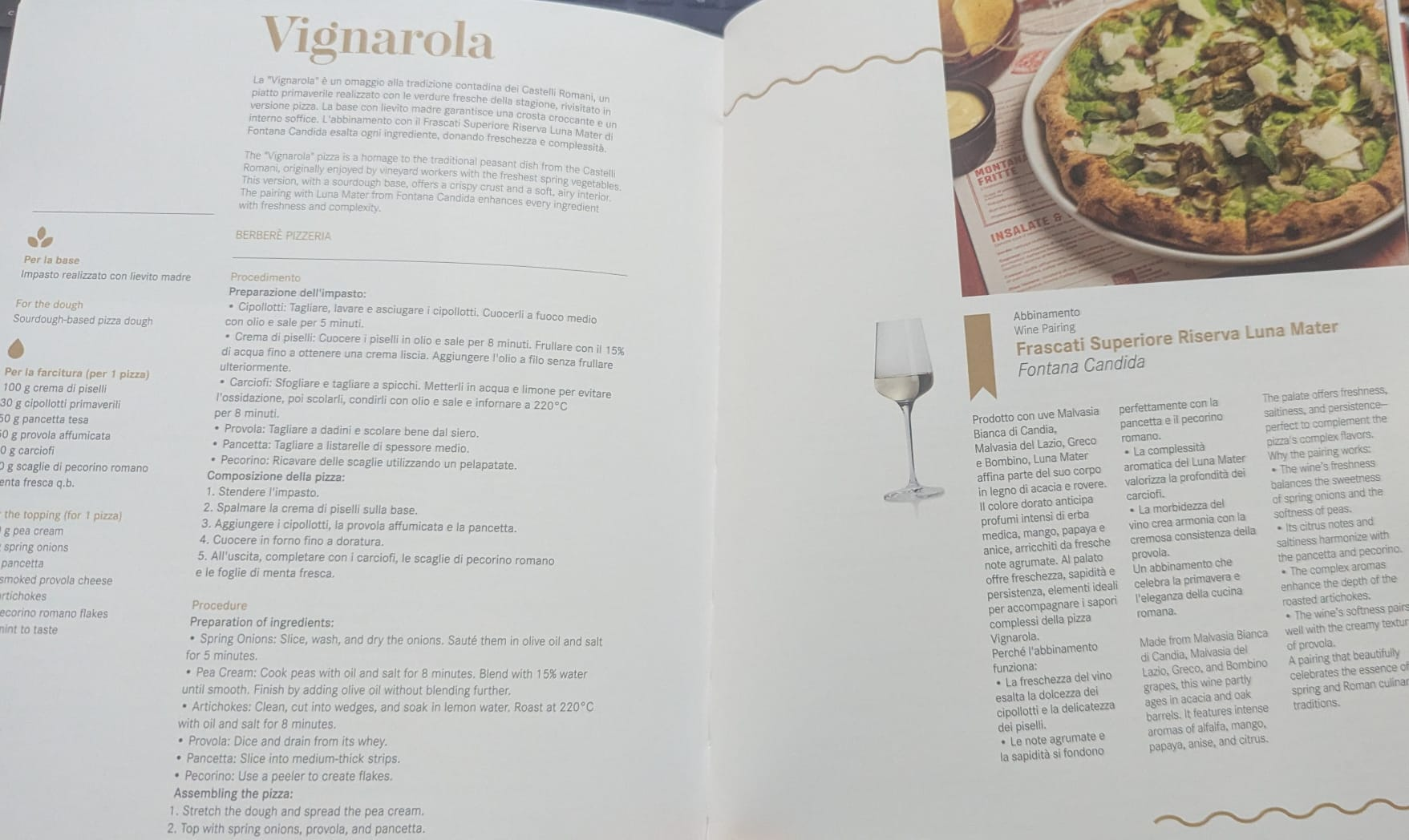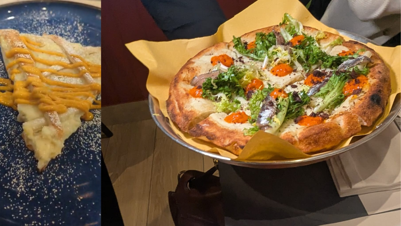 La serata del 16 febbraio alle ore 20:30 è stata l’occasione per presentare ufficialmente il volume attraverso un percorso di degustazione che ha celebrato l’identità del territorio. Il menù si è aperto con un Arancino Vesuvio realizzato con riso venere, piennolo e ragù di piennolo, seguito dalla prima pizza, il “Rutiello” Rinforzo vesuviano con crema di cavolfiore, scarola riccia croccante, alici, dressing di papaccella del Vesuvio e crumble di olive. L’esperienza è proseguita con la pizza Baccalà e Torzella su impasto ai carboni vegetali con crema di torzella, dressing di piennolo e fonduta di provolone del monaco, per poi giungere allo Scarpariello guarnito con ragù di piennolo, fonduta di pecorino, cialda di grana e basilico cristallizzato.