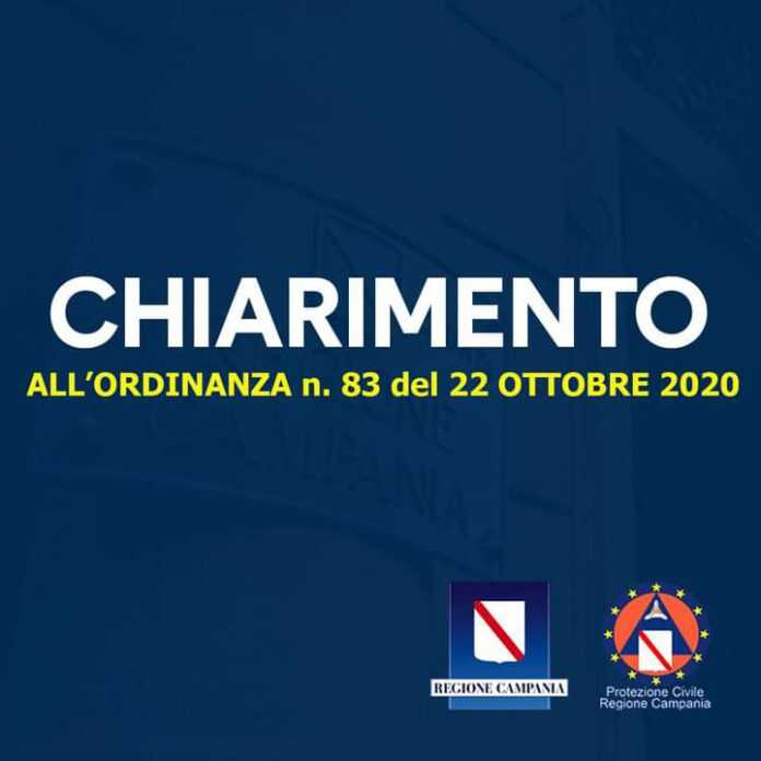 Con una nota della Regione Campania, si chiarisce l’applicazione dell’ordinanza n.83 firmata oggi.