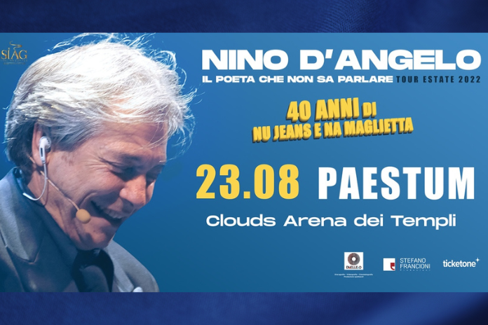 Dopo il trionfale debutto nella sua Napoli lo scorso 21 luglio e l’abbraccio con il suo pubblico in giro per la penisola con un tour estivo che sta toccando meravigliose location italiane magiche e ricche di storia, Nino D’Angelo torna in Campania con ‘Il Poeta che non sa parlare – Tour Estate 2022’: l’artista è atteso domani, martedì 23 agosto, alla Clouds Arena dei Tempi di Paestum (Sa).