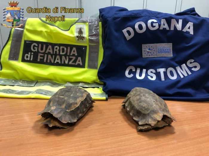 Due tartarughe, appartenente a una specie protetta, sono state sequestrate dalla Guardia di Finanza e dall’Agenzia delle Dogane nell’aeroporto Capodichino di Napoli. Le due “testudo marginata” rientrano tra le specie di fauna e flora selvatiche minacciate di estinzione. Erano sprovviste dei certificati d’importazione, così come previsto dalla Convenzione di Washington, e a portarle a Napoli, dal Ghana, via Milano, è stato un passeggero ivoriano di 38 anni, proveniente da Accra, che è stato denunciato.