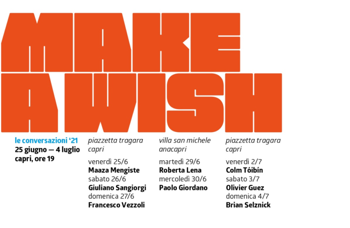 Il programma definitivo del festival 2021 vedrà la partecipazione a Capri e Anacapri di Maaza Mengiste (25 giugno), Giuliano Sangiorgi (26 giugno), Francesco Vezzoli (27 giugno)Ad Anacapri, a Villa San Michele saranno ospiti Roberta Lena (29 giugno)e Paolo Giordano (30 giugno)Il secondo week end a Tragara ci sarannoColm Tóibín (2 luglio), Olivier Guez (3 luglio), e Brian Selznick (4 luglio).