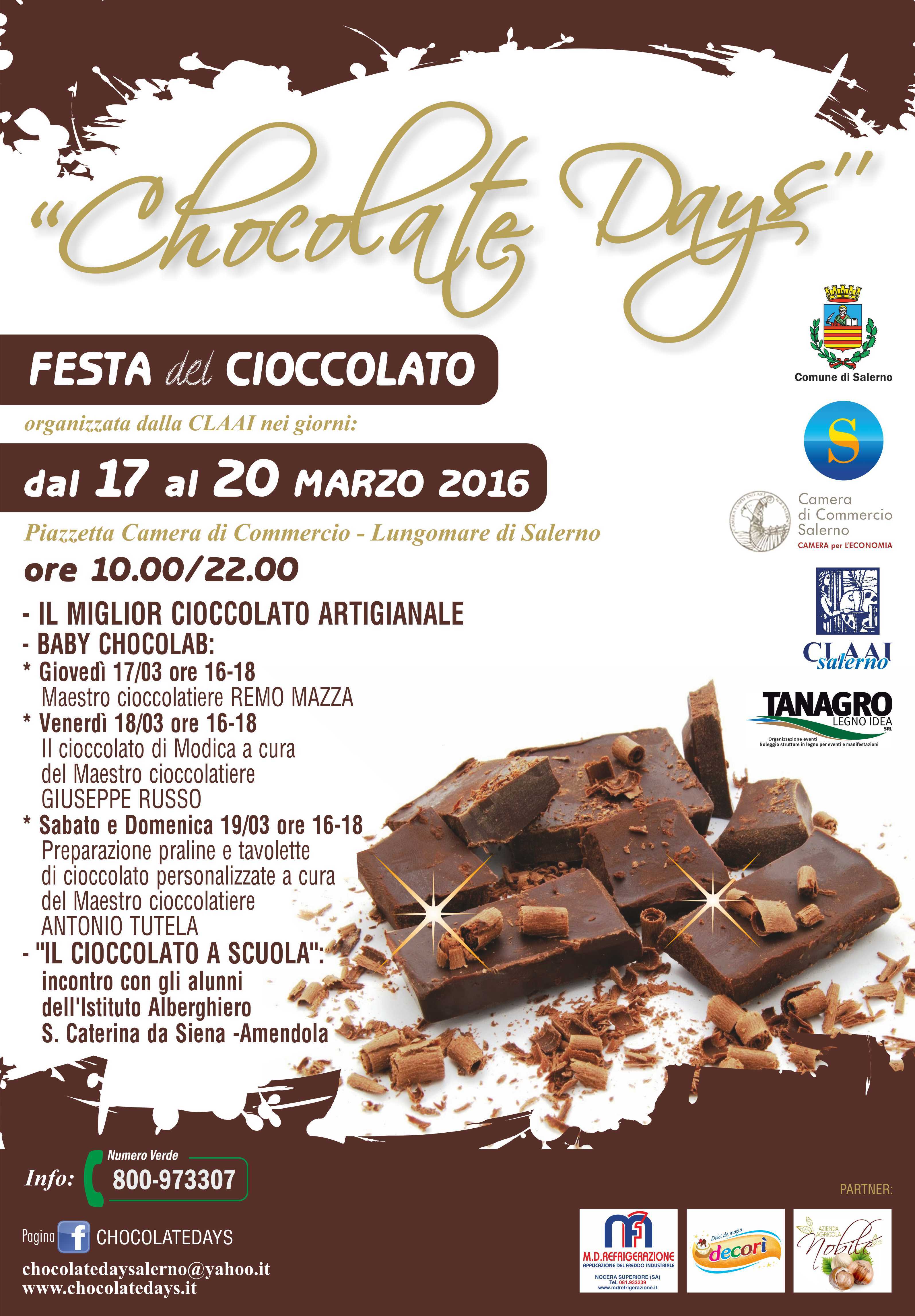 Partner dell’evento “Chocolate Days”: M.D. Refrigerazione di Nocera Superiore (Sa), Le Farine Magiche Lo Conte (Av) e Azienda Agricola Nobile di Giffoni Sei Casali (Sa).