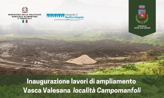 Al via i lavori di ampliamento di Vasca Valesana, l’opera di ingegneria  idraulica progettata dall’ufficio tecnico del Consorzio di Bonifica Integrale Comprensorio Sarno in sinergia con il Comune di Castel San Giorgio e finanziata dal Ministero dell’Agricoltura per 4,6 milioni di euro.