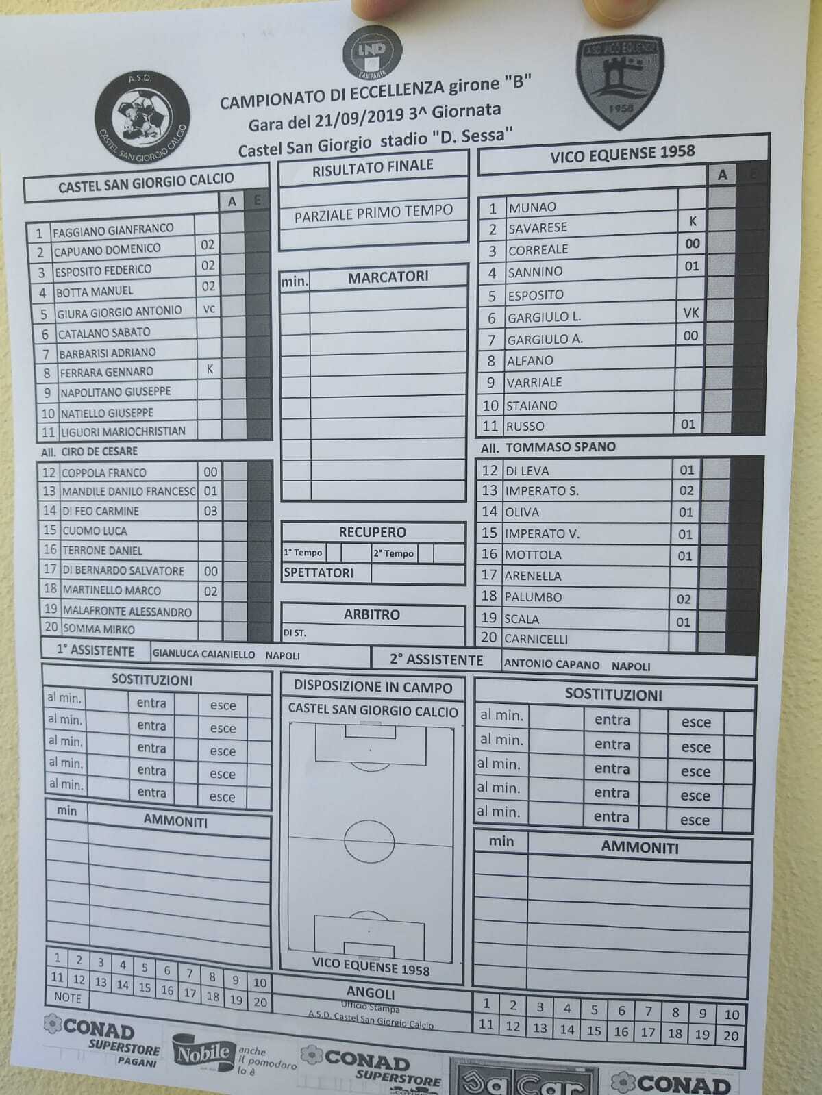 Espulso all’ 83′ Carnicelli per doppia ammonizione (VE). Ammoniti: Botta, Liguori, Natiello, Giura, Somma (CSG), Esposito, Savarese (VE).