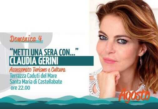 Domenica 4 agosto alle ore 22 tutto pronto per dare il benvenuto alla nota e talentuosa Claudia Gerini, che incontrerà il pubblico nella suggestiva terrazza Caduti del Mare, nel pieno centro di Santa Maria di Castellabate (SA).