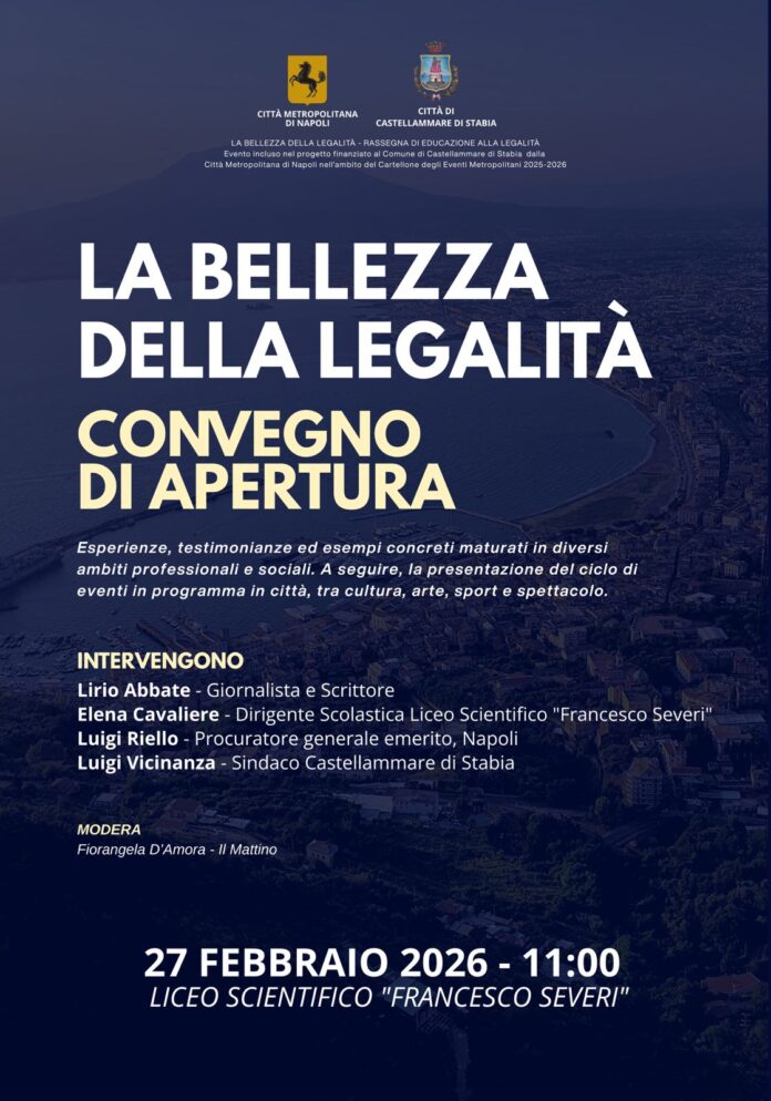 Si terrà venerdì 27 febbraio a partire dalle ore 11.00 presso il Liceo Scientifico Francesco Severi di Castellammare di Stabia il convegno di apertura della rassegna “La Bellezza della Legalità”.