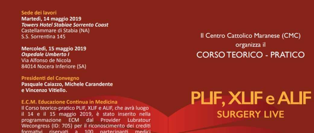 Il Corso teorico-pratico PLIF, XLIF e ALIF, è stato inserito nella programmazione ECM dal Provider Lubratour Wecongress (ID: 705) per il riconoscimento dei crediti formativi riservati a 100 partecipanti medici, specializzati in neurochirurgia, neuroradiologia, cardiologia, medicina interna, neurologia, oncologia, anestesia e rianimazione, ortopedia e traumatologia, radiodiagnostica e medicina di base, fisioterapisti e infermieri.