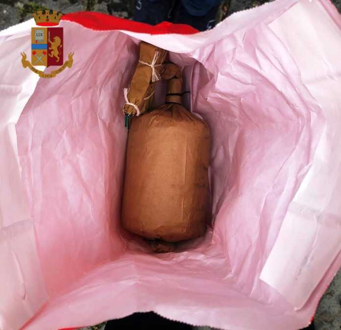 I poliziotti, con il supporto del Nucleo Artificieri dell’Ufficio Prevenzione Generale, hanno rinvenuto un ordigno esplosivo del tipo “bomba carta” del peso di circa 620 grammi.