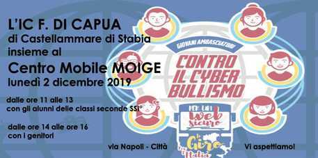 All’Istituto comprensivo ‘F. di Capua’ di Castellammare di Stabia arriva il primo centro mobile di sostegno e supporto alle vittime del cyberbullismo del MOIGE (Movimento italiano genitori). Il personale specializzato – che sta effettuando il giro d’Italia – incontra, nella sede di via Napoli, gli alunni stabiesi nel piazzale antistante l’Istituto di Capua oggi dalle 11 alle 13. Nella stessa giornata anche i genitori potranno interpellare gli esperti del Moige dalle 14 alle 16.