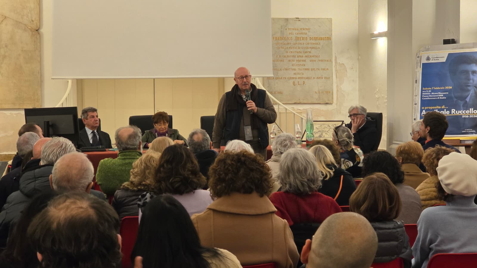 Nel giorno in cui avrebbe compiuto settant’anni, Castellammare di Stabia ha risposto con una sala gremita al Museo Diocesano (MUDISS): un pubblico fatto di persone che lo hanno conosciuto, di artisti, operatori culturali, studiosi, giovani e appassionati di teatro. Una presenza forte, partecipe, che ha restituito l’immagine di un abbraccio collettivo e ideale ad Annibale, come se la città intera avesse voluto dirgli: siamo ancora qui, con te.