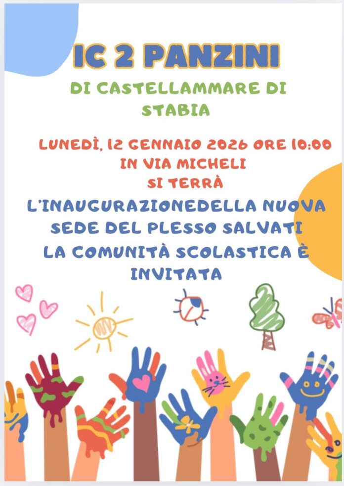 Castellammare di Stabia si prepara a vivere una giornata significativa per il mondo della scuola e per il quartiere Scanzano. Lunedì 12 gennaio 2026, alle ore 10.00, sarà inaugurata la nuova sede dell’Istituto Comprensivo 2 Panzini – Plesso C. Salvati, in via Moscogiuri. Un intervento atteso, che restituisce alla città una struttura scolastica moderna e pienamente funzionale.