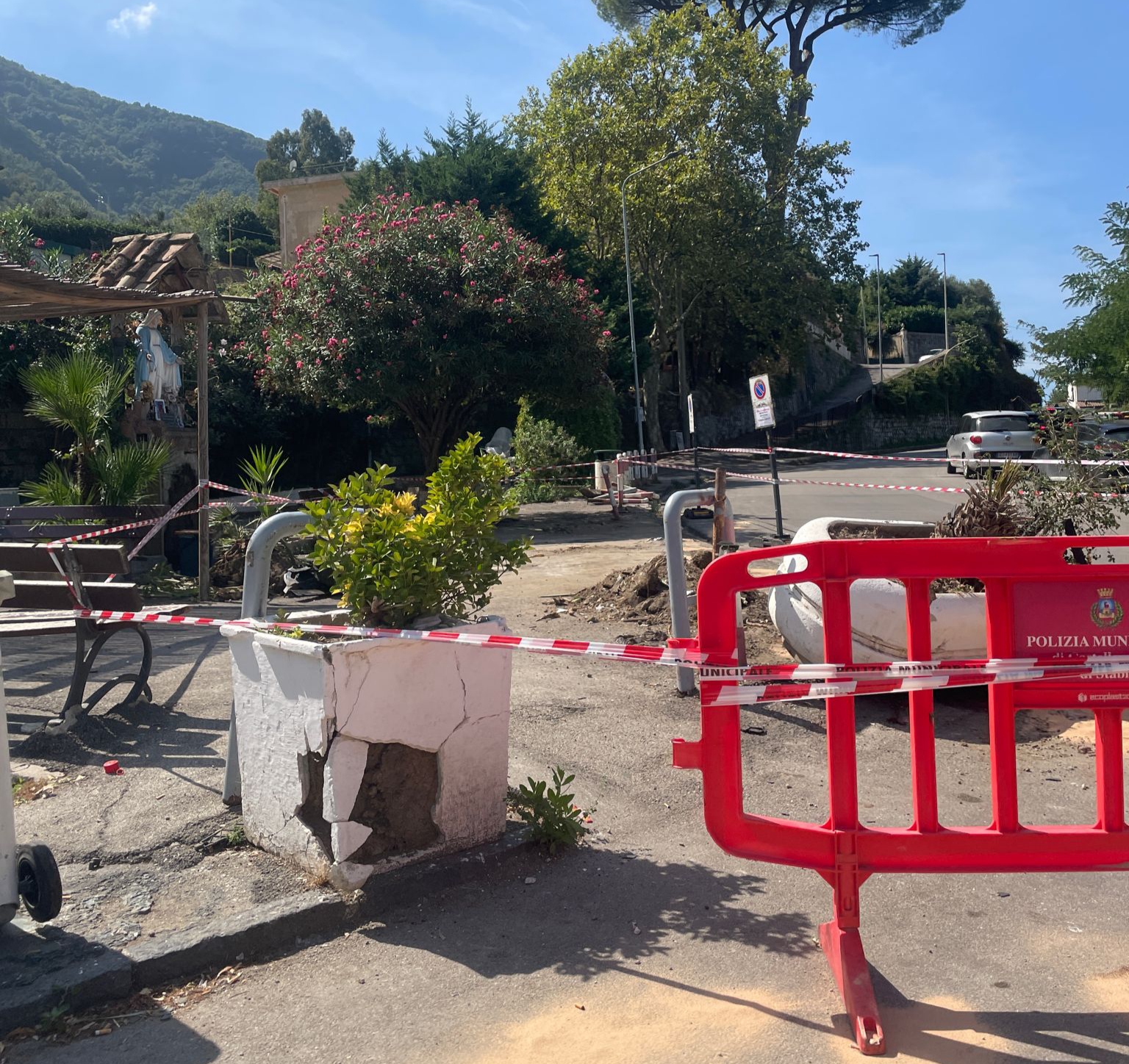 Sul posto sono intervenuti i vigili urbani di Castellammare, coordinati dal comandante Francesco De Gaudio, per gestire la situazione e mettere in sicurezza l’area. Le fioriere e le panchine in cemento, simboli dello spazio pubblico, sono state gravemente danneggiate.