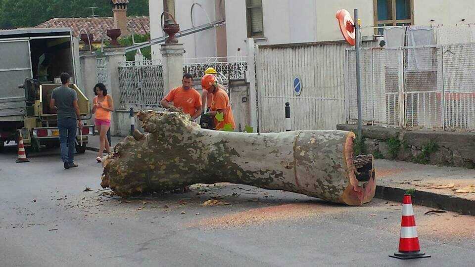 Prosegue l’operazione di abbattimento degli alberi malati e a rischio crollo a Cava de’ Tirreni. Dopo il taglio del pino pericoloso in località Annunziata e dell’esemplare Pinus Pinea in via Prezzolini a Santa Maria del Rovo, questa mattina, giovedì 11 agosto 2016, è stato abbattuto il platano in via Caliri. In totale sono 37 esemplari di platani, pini, cedri e lecci cittadini la cui probabilità di crollo è stata ritenuta elevata da una analisi commissionata al Dipartimento di Agraria dell’Università Federico II di Napoli.