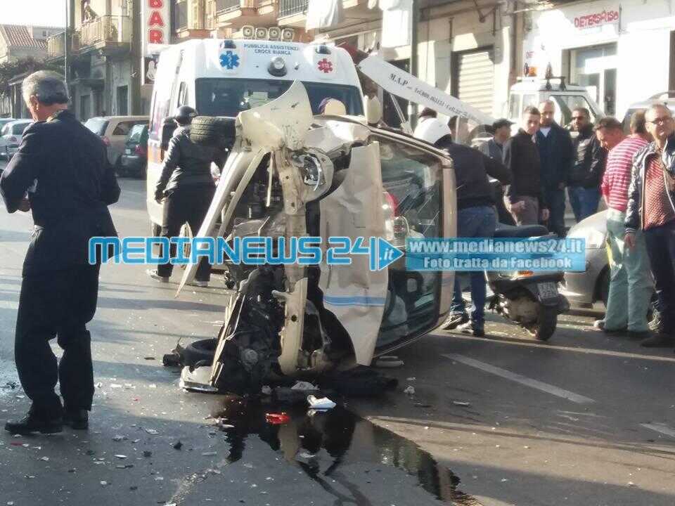 Quattro le auto coinvolte, una delle quali (una Fiat 600) – a causa del violento impatto – ha finito addirittura col ribaltarsi. Completamente distrutta la parte anteriore del veicolo.