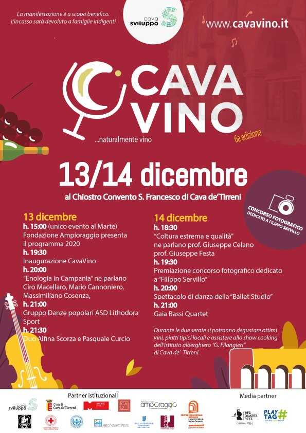 Calici alzati a Cava De’ Tirreni per la sesta edizione della kermesse CavaVino organizzata, come ogni anno, dall’associazione di imprenditori cavesi “CAVA SVILUPPO”. Il Convento di S. Francesco e Sant’Antonio di Cava de’ Tirreni si appresta ad ospitare, venerdì 13 e sabato 14 dicembre a partire dalle ore 18, l’evento enoculturale dove poter degustare ottimo vino, cibo di strada e ascoltare musica dal vivo.