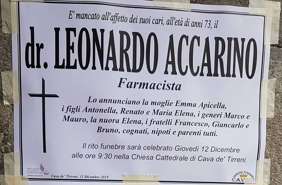Tutta la città vicina alla famiglia Accarino per la scomparsa di una delle istituzioni tra i farmacisti metelliani, il notissimo ed apprezzatissimo dottor Leonardo.