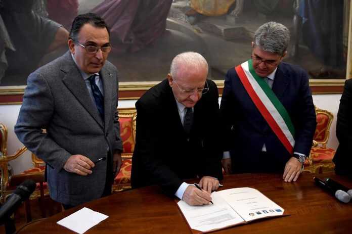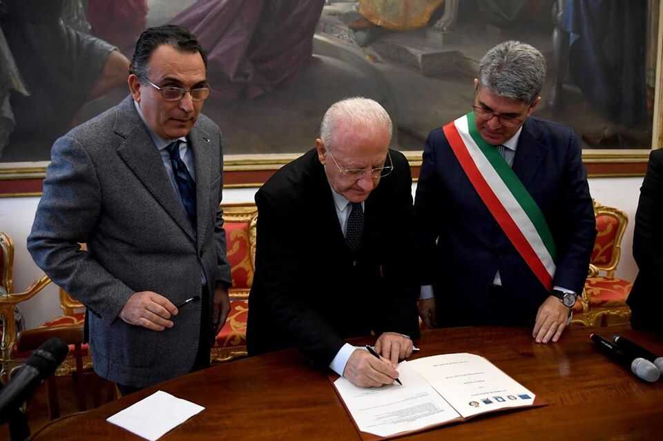 Sottoscritto stamattina nella Sala di Rappresentanza del Palazzo di Città, dal Presidente della Giunta Regionale Vincenzo De Luca e dal Sindaco Vincenzo Servalli, il decreto di assegnazione definitivo del finanziamento di 11.197.384,56 euro, del Programma Integrato Città Sostenibili, (P.I.C.S.), finanziato con i fondi P.O. Fesr 2014-2020.