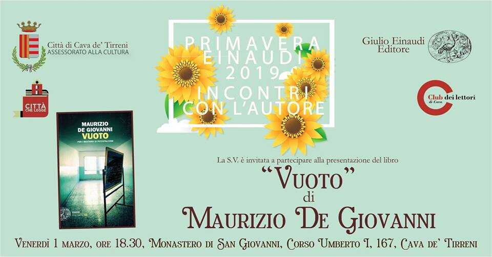 Lo scrittore napoletano, Maurizio De Giovanni, sarà l’ospite di “Primavera Einaudi” in programma il prossimo venerdì, 1 marzo, alle ore 18.30, presso la Sala delle Esposizioni del Monastero di San Giovanni.