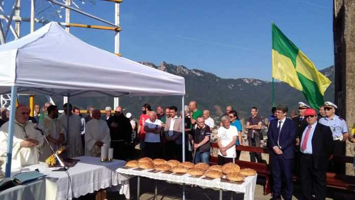 Dopo la Santa Messa, l’Arcivescovo Soricelli e il Sindaco Servalli, hanno consegnato a tutte le Associazioni dei Trombonieri e all’Ente Montecastello, il pane della fratellanza, donato dall’Associazione Amici di Monte Castello 1999 e sono iniziate le salve di sparo del pistone dalle tante postazioni sul Monte Castello che proseguono fino a sera.