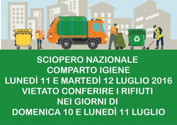 A seguito della sciopero proclamato dalle Segreterie nazionali dei sindacati CGIL, CISL, UIL, e Fiadel del comparto igiene ambientale lunedì 11 e martedì 12 luglio, non sarà effettuata la raccolta dei rifiuti differenziati.  Il Sindaco Vincenzo Servalli, in data 7 luglio 2016, ha emanato l’Ordinanza n. 43 con la quale, per ridurre al minimo disservizi e disagi ai cittadini causati dal mancato ritiro dei rifiuti, si vieta di conferire le frazioni merceologiche raccolte separatamente dalla Metellia Servizi e dal Consorzio di Bacino Sa/1, secondo i calendari di ogni zona, ovvero: frazione organica umida, secco indifferenziato, carta e cartone, multimateriale, vetro, nei giorni di domenica 10 e lunedì 11 luglio.
