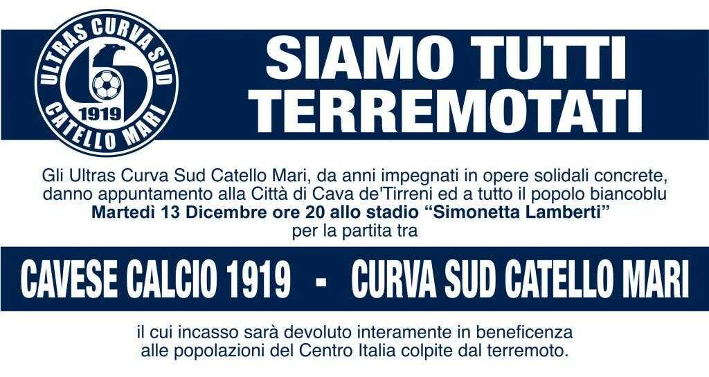Si chiuderà questa sera la tre giorni di solidarietà organizzata dagli Ultras Curva Sud “Catello Mari” di Cava de’ Tirreni. Il clou è in programma allo stadio “Simonetta Lamberti”, dove la Cavese di mister Emilio Longo scenderà in campo contro una rappresentativa degli Ultras aquilotti.