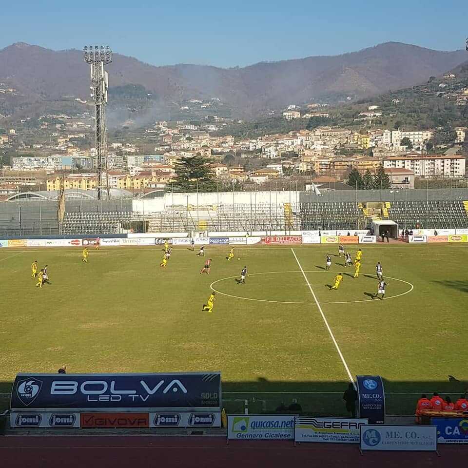 La sintesi alla fine è questa: al gol di Fella al 18′, ha risposto Luppi a 7′ dalla fine. In mezzo anche il rigore sbagliato da Pacilli al 47′ del primo tempo. Un punto a testa, che smuove di pochissimo la classifica di entrambe. In porta a sorpresa comincia Bisogno ma la sua partita dura una decina di minuti, s’infortuna e lascia i pali a De Brasi. La Cavese passa in vantaggio con una gran bella ripartenza. Azione di contropiede da manuale: tre tocchi e palla in porta. Recupera palla Bacchetti che serve Rosafio e manda Fella in porta con una verticalizzazione. Il numero 11 supera Valentini con un tiro sotto le gambe. Al 22′ Lia sfiora il raddoppio mettendo di poco a lato. Nel recupero della prima frazione, rigore per la Viterbese. Inserimento in area di Zerbin, che viene atterrato da Tumbarello. Dal dischetto Pacilli spiazza De Brasi ma coglie il palo. Secondo tempo, tre cambi in un sol colpo per gli ospiti, che poi utilizzano subito anche il quarto a causa dell’infortunio di Coda. Bravo De Brasi su una delle sortite laziali, meno bravo, anzi poco fortunato, Ferrara con un tiro che per poco non centra il bersaglio. Al 21′ Magrassi è protagonista di uno spreco clamoroso su assist di Fella, pallone fuori. Quattro minuti dopo sempre Magrassi alza troppo la mira. Gli sprechi si pagano. Arriva il pareggio ospite: sgroppata sulla fascia di Molinaro che supera Manetta e mette un cross basso in area che Luppi deve solo spingere in porta. Reazione Cavese: punizione di Sainz Maza, allontanata dalla difesa, pallone che arriva sui piedi di Favasuli ma il capitano mette oltre la traversa. Risposta immediata ospite: colpo di testa di Polidori, finisce a lato. Ultima chance per gli aquilotti: Magrassi per un soffio non arriva sul cross di Sainz Maza.