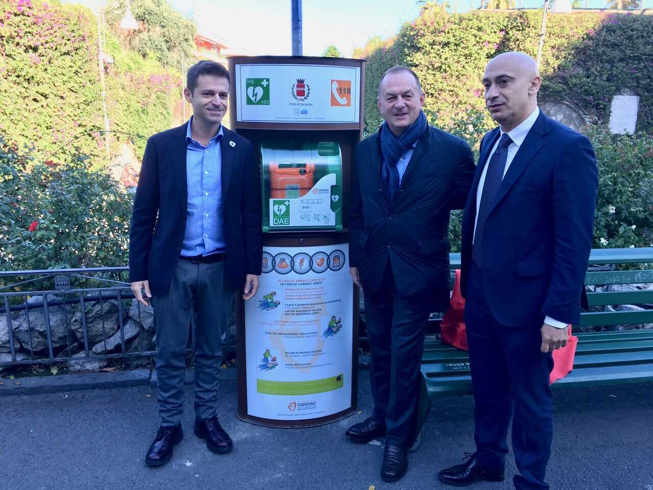 “In penisola sorrentina sono presenti 90 defibrillatori dislocati soprattutto tra scuole e farmacie – è intervenuto il sindaco Iaccarino – Ma questi due totem sono i primi esempi nella nostra zona, che mi auguro vengano presto seguiti da tutte le altre amministrazioni locali. Di pari passo deve andare l’addestramento dei cittadini nelle manovre di primo soccorso che, se praticate entro i primi dieci minuti di arresto cardiaco, possono salvare una vita. Infine un appello alle società sportive dilettantistiche a mettersi regola, entro il 30 novembre, con la normativa che prevede la presenza di defibrillatori in campi da gioco, palestre e piscine”.