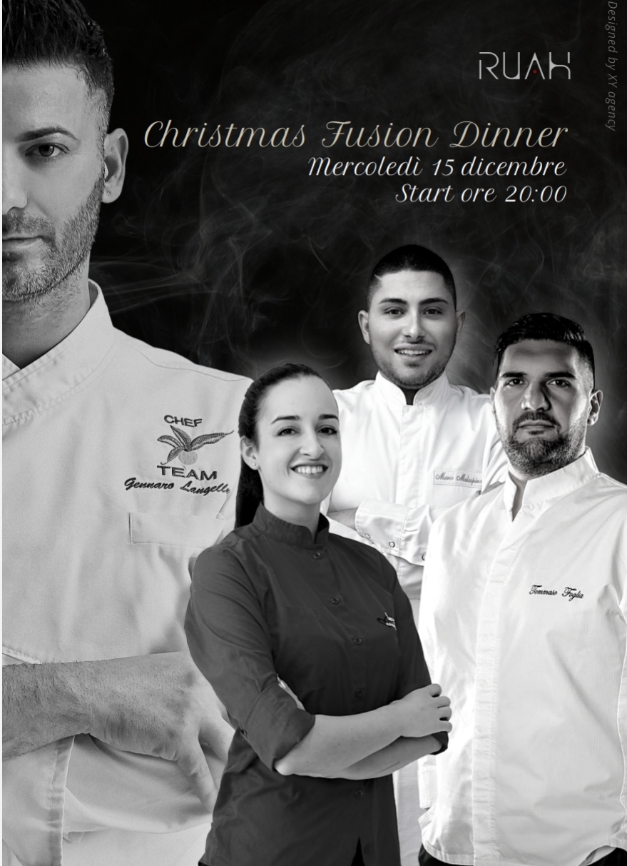 La cena di stasera sarà una rivisitazione dei piatti della tradizione natalizia, che con Langellotti, Malaspina e Foglia diventano fusion per un particolarissimo “Christmas fusion Dinner”.