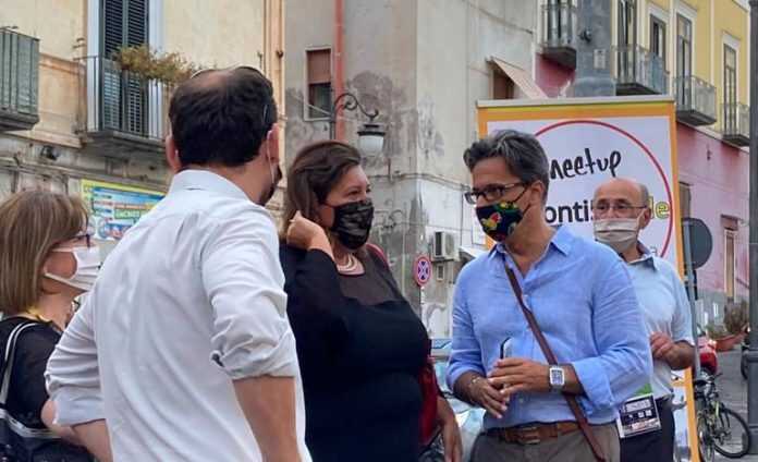 Insieme ai parlamentari Carmen di Lauro e Luigi Gallo, alla presentazione ufficiale del candidato consigliere Mazzella, in Piazza Ernesto Cesaro, c’era anche la candidata alla presidenza della Regione Campania, Valeria Ciarambino. La piazza è gremita e tante sono anche le persone affacciate ai balconi dei palazzi prospicienti l’agorà. Un servizio d’ordine impeccabile. Rispettato il distanziamento dei posti a sedere ed effettuata la distribuzione accurata di mascherine per chi avesse dimenticato di portarla da casa.