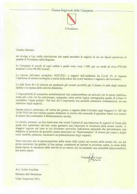 Infatti, “L’impossibilità – ha scritto De Luca – di consentire assembramenti che costituirebbero un pericolo per la salute pubblica, come più volte Lei ha sottolineato, comporta, come prima logica conseguenza quella di evitare le cosiddette “classi pollaio”. A maggior ragione nel caso in cui dovessero pervenire indicazioni nazionali che prevedessero una didattica in presenza da garantire anche attraverso un “dimezzamento” di alunni per classe e doppi turni. Sarebbe quindi necessario, un potenziamento degli organici delle docenze“.