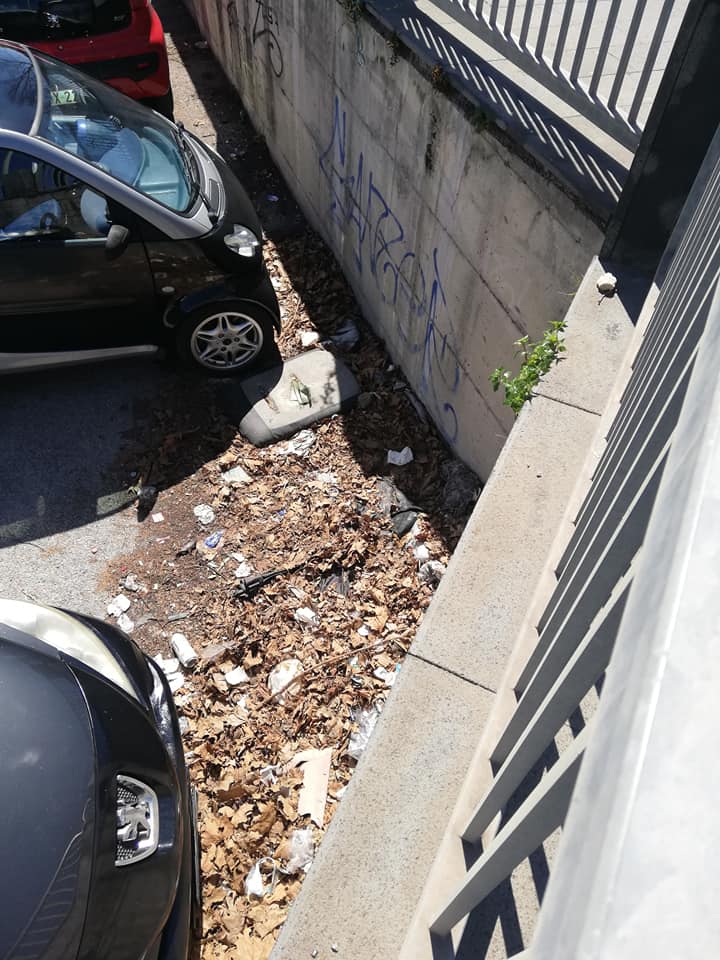 Solo qualche giorno fa, per mero caso, l’avv. Marchetti scopriva il degrado in cui versava la piazzetta: a pochi metri dalla Cittadella giudiziaria, in una delle arterie principali della nostra cittadina, giaceva un tesoretto di pattume. Una vera e propria discarica abusiva: materassi, sanitari, addirittura pneumatici e la carcassa di un motorino, oltre i rovi.