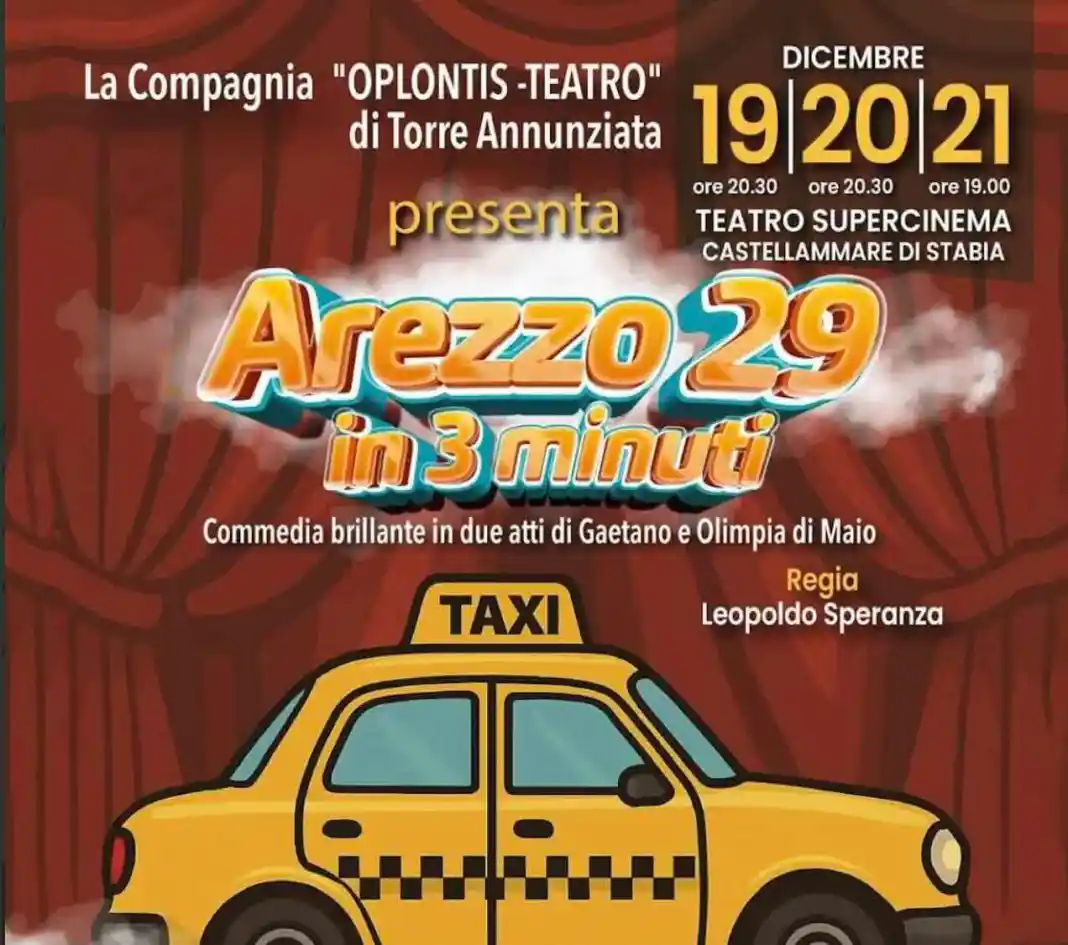 Dal 19 al 21 dicembre, la compagnia festeggia i suoi trent’anni di attività portando in scena la commedia in due atti “Arezzo 29 in tre minuti”, scritta dai fratelli Gaetano e Olimpia Di Maio. Gaetano, commediografo e poeta, e Olimpia, attrice e impresaria, affrontano con ironia temi di grande rilevanza sociale, mescolando comicità e riflessione.