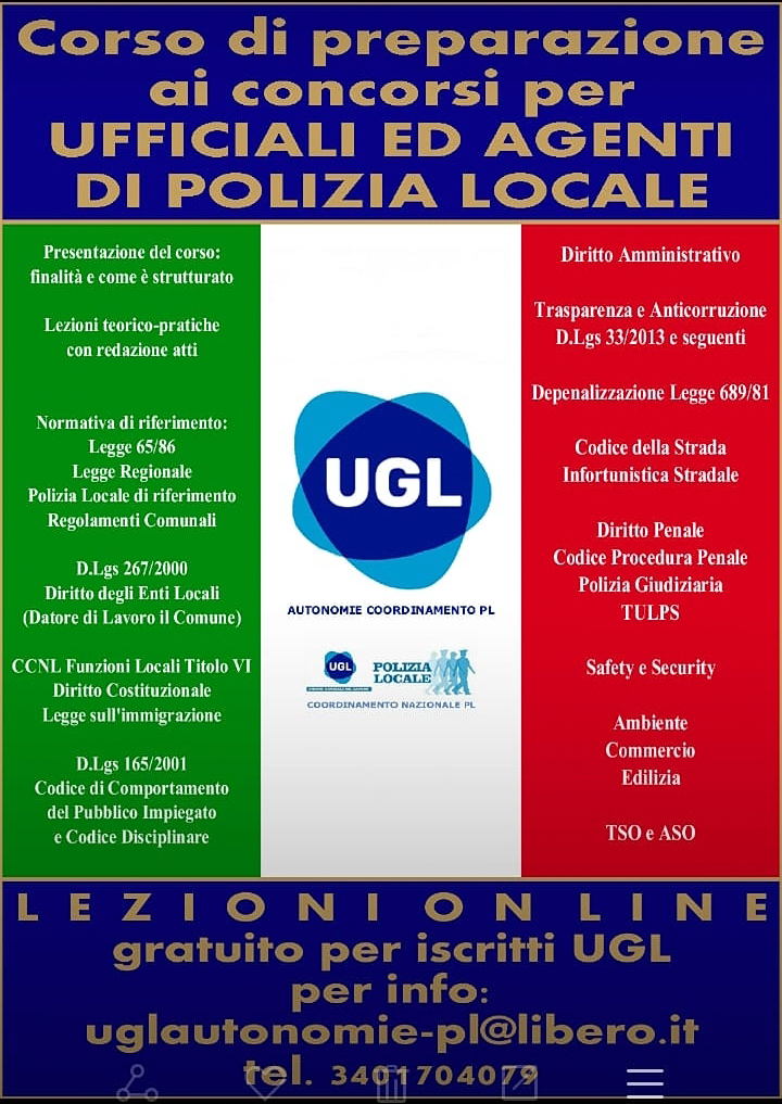 Per l’occasione l”UGL ha organizzato un corso di preparazione al Concorso tenuto da operatori di settore altamente qualificati, con formula FAD, formazione a distanza.