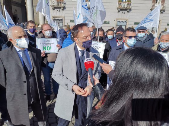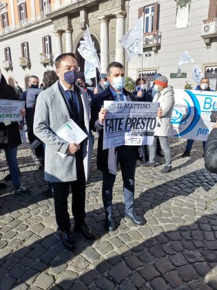 Al loro fianco il presidente di Confesercenti Campania Vincenzo Schiavo e il presidente di Federnoleggio Napoli Antonio Paone. «C’è disperazione e grande rabbia – ha riferito Vincenzo Schiavo -, l’intero settore della mobilità privata è in grave crisi. Sono oltre mille le aziende in Campania a rischio fallimento e per oltre 8mila lavoratori c’è il pericolo di perdere il posto di lavoro. Sono 4mila gli autobus turistici che nella nostra regione danno lavoro a 6mila persone. Per un fatturato annuo di oltre 500 milioni di euro. A questo si aggiunga la perdita di valore del patrimonio di queste aziende (i mezzi e le vetture) di 120 milioni complessivi ulteriori che sono andati in fumo i 12 mesi. A causa del Covid-19 le aziende sono ferme ormai da più di un anno e il Governo centrale le ha ignorate completamente. Il dramma è ancora più grande se si comprende l’indotto, e anche in questo caso i dati sono più che allarmanti: in un anno le attività dei gommisti e dei carrozzieri hanno “bruciato” solo in Campania 12 milioni di euro di fatturato, i meccanici 14 milioni, i tappezzieri 5 milioni, gli elettrauto 10 milioni di euro. Cinque categorie che perdono quasi 53 milioni di euro di fatturato l’anno, per un indotto che dà lavoro a oltre 2200 persone. Parliamo di una filiera che vive all’80% con il turismo e al 20% con la scuola, tra gite e servizi scolastici. Attività azzerate del tutto o quasi nel 2020 e la storia sembra ripetersi nel 2021».