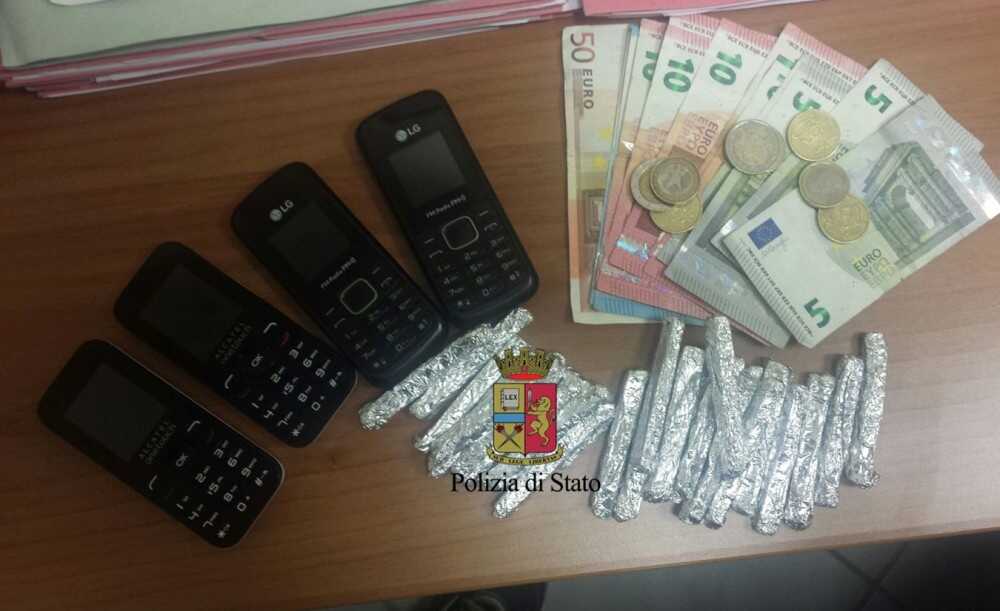 All’esito di vari appostamenti e pedinamenti, i giovani sono stati bloccati in via Santa Barbara, a Caivano, dinanzi ad un bar durante uno scambio droga-soldi. Dai successivi controlli, i poliziotti hanno recuperato 26 stecche di hashish, 130 euro e quattro telefonini utilizzati per raccogliere gli ordinativi di droga.