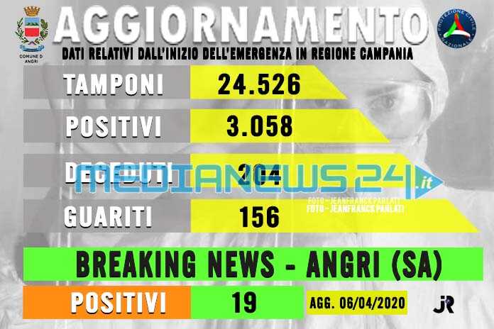 Il dato è stato aggiornato a diciannove, quindi si allunga la lista dei casi positivi al Coronavirus registrati ad Angri in solo ventiquattro ore dal precedente bollettino.