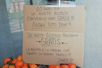 “Dieci anni fa mi avete accolto, ora voglio dirvi grazie. Andrà tutto bene! Se avete bisogno prendete gratis la frutta e la verdura che trovate su questo tavolo”.
