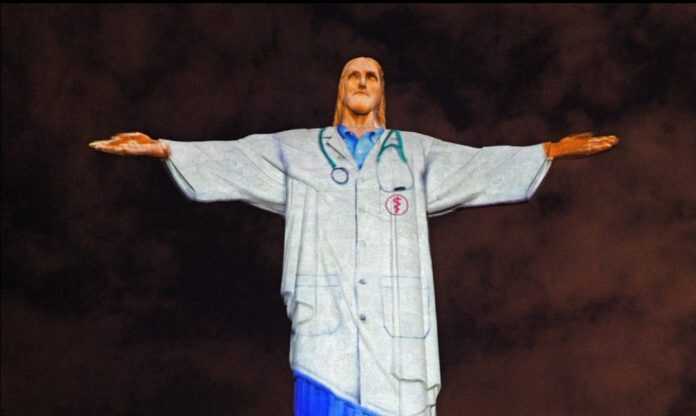 Nel giorno di Pasqua, la Chiesa cattolica brasiliana ha reso omaggio al personale sanitario impegnato nel contrasto all’epidemia di coronavirus e ha ‘vestito’ con l’immagine di un camice l’imponente statua bianca del Cristo Redentore che sovrasta la città di Rio de Janeiro con un camice.