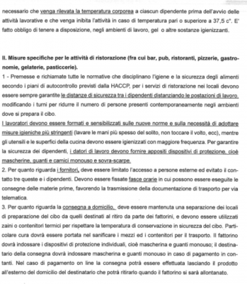 a) sono consentite le attivita’ e i servizi di ristorazione – fra cui pub, bar, gastronomie, ristoranti, pizzerie, gelaterie e pasticcerie- esclusivamente, quanto ai bar e alla pasticcerie, dalle ore 7,00 alle ore 14,00, gli altri esclusivamente dalle ore 16,00 alle ore 22,00, per tutti con la sola modalità di prenotazione telefonica ovvero on line e consegna a domicilio e nel rispetto delle norme igienico-sanitarie nelle diverse fasi di produzione, confezionamento, trasporto e consegna dei cibi e salvo l’obbligo di attenersi alle prescrizioni di cui al successivo punto 2;