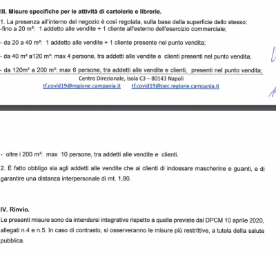 b) sono consentite le attività di commercio al dettaglio di articoli di carta, cartone, cartoleria e libri, esclusivamente dalle ore 8,00 alle ore 14,00, con raccomandazione di adottare misure organizzative atte a promuovere la modalità di vendita con prenotazione telefonica ovvero on line e consegna a domicilio, salvo l’obbligo di attenersi alle prescrizioni di cui al successivo punto 2.