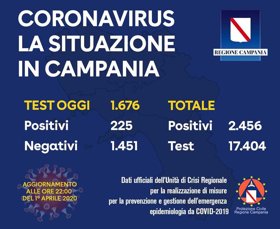 L’Unità di Crisi della Regione Campania comunica che sono pervenuti i seguenti dati: