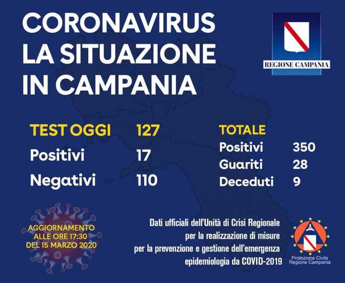 L’Unità di Crisi della Regione Campania comunica che nella mattinata odierna sono stati esaminati presso il centro di riferimento dell’ospedale Cotugno 127 tamponi. Di questi 17 sono risultati positivi.