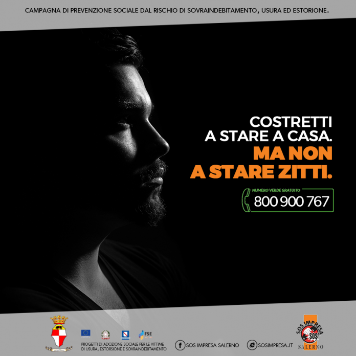 E’ il claim della Campagna di prevenzione lanciata dall’associazione Sos Impresa Salerno, impegnata, anche in questa fase di emergenza COVID-19, a tenere alta l’attenzione sui prestiti a tassi usurai, sui reati di estorsione e sul rischio di sovraindebitamento.