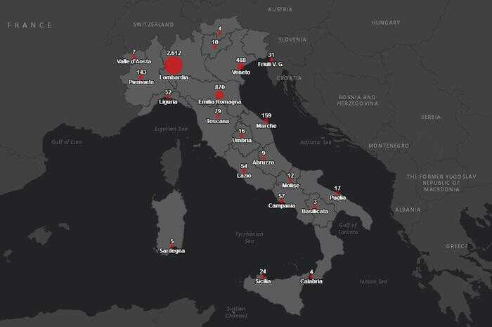 E’ online una mappa dei contagi di coronavirus in tutta Italia realizzata dalla Protezione Civile. Un’iniziativa, spiega il Dipartimento, “allo scopo di garantire una sempre più efficace e trasparente comunicazione istituzionale”. Sarà possibile consultare una cartina geografica dell’Italia e individuare i casi dei contagi, indicati con un pallino rosso. La visualizzazione del numero dei contagi può essere fatta con un dettaglio che va dal livello regionale alla singola provincia.