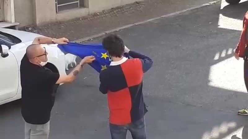 Hanno trasgredito le regole scendendo in strada, a Biella, dove si sono dati appuntamento per bruciare la bandiera dell’Unione europea. Tuttavia i tre militanti di Forza Nuova protagonisti di questo video, dopo averci provato a lungo, si sono dovuti arrendere e hanno strappato il vessillo. Il trio non sapeva, probabilmente, che la bandiera è ignifuga proprio in base alle normative europee che riguardano i tessuti.