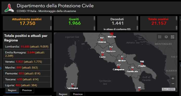 Sono aumentati del 36,7% i guariti nelle ultime 24 ore, passando da 1.439 a 1.966 (+527). Il numero dei morti, invece, è aumentato di 175, con un incremento del 13,8%, uno dei più bassi degli ultimi giorni. In Lombardia, in particolare, il numero dei decessi è aumentato di circa l’8%, pari a 76 casi, contro i 146 di ieri. Infine, il numero dei malati è cresciuto di 2.795 con un incremento del 18,6%.